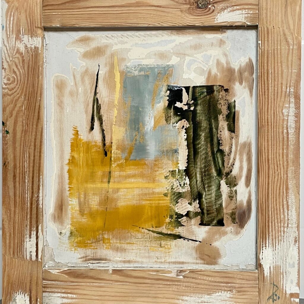 l’histoire murmure à travers les couches de peinture. Une porte ancienne devient une toile où le temps et l’abstraction se rencontrent
